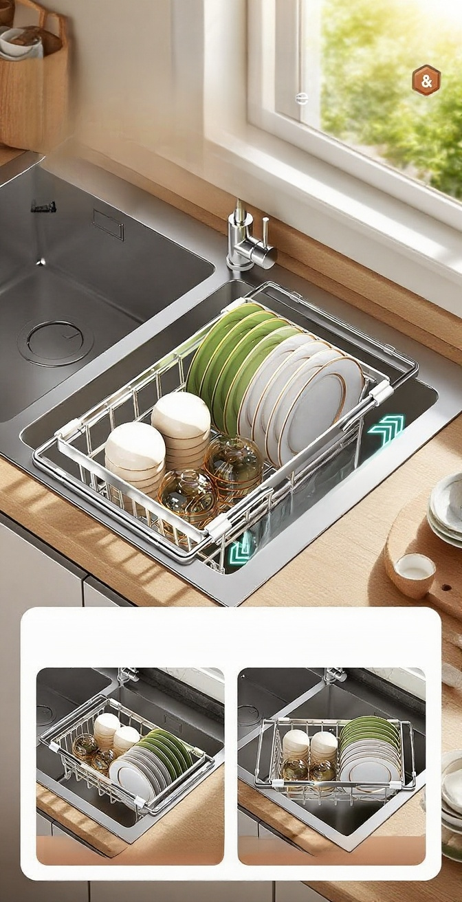 색상:(두꺼운 스테인리스) 확장 가능한 싱크대용 그릇 선반-단일 선반, (두꺼운 스테인리스) 확장 가능한 싱크대용 그릇 선반-컵걸이&젓가락통 포함, (두꺼운 스테인리스) 확장 가능한 그릇 선반-단일 선반&물받이, (두꺼운 스테인리스) 확장 가능한 그릇 선반-컵걸이&젓가락통&물받이 포함